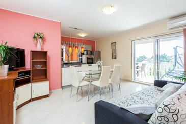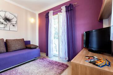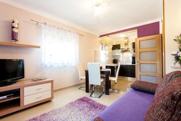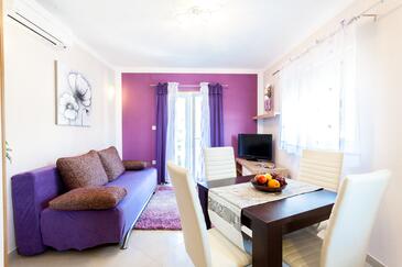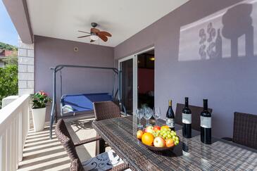 Appartamento può accogliere 10 ospiti. I letti sono disposti nelle camere da letto che sono 3, e nella camera di soggiorno, su 101m2. Gli ospiti hanno a disposizione il proprio terrazzo per godere nelle calde serate estive. Dall'appartamento si gode di una vista sul mare. Si può preparare il cibo utilizzando il barbecue comune.
