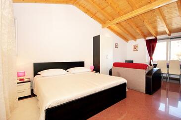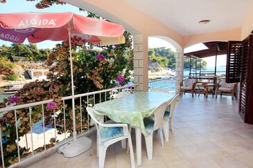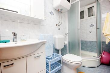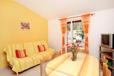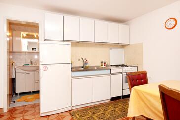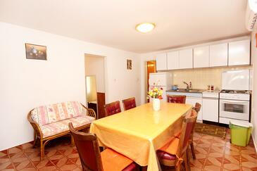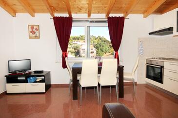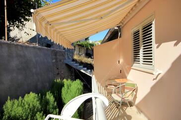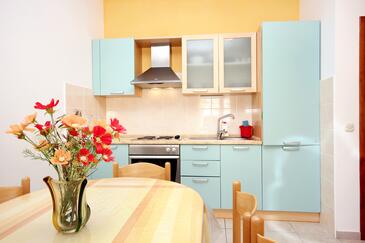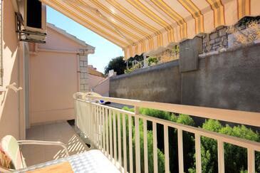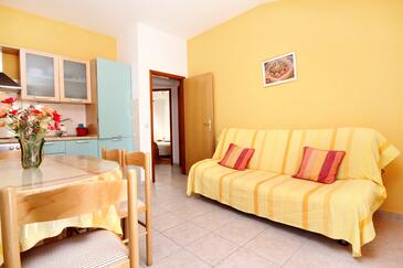 Appartamento può accogliere 4 ospiti. I letti sono disposti nelle camere da letto che sono 2, su 50m2. Gli ospiti hanno a disposizione il proprio terrazzo per godere nelle calde serate estive. Dall'appartamento si gode di una vista sul mare. Si può preparare il cibo utilizzando il barbecue comune.
