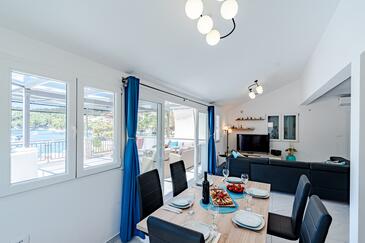 Casa può accogliere 14 ospiti. I letti sono disposti nelle camere da letto che sono 7, su 241m2. Gli ospiti hanno a disposizione il proprio terrazzo per godere nelle calde serate estive. Dalla casa si gode di una vista sul mare. Per il piacere totale e il relax c'è il barbecue privato solo per gli ospiti di quest'alloggio. Durante il soggiorno gli ospiti si possono rilassare nella piscina privata. Nell'unità di alloggio si possono portare gli animali domestici senza alcun pagamento supplementare.