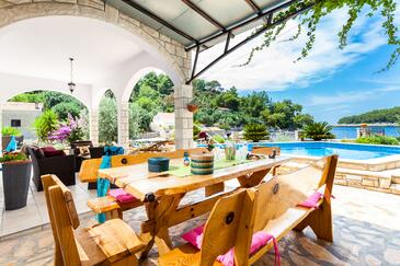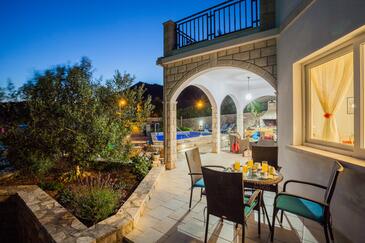 Casa può accogliere 14 ospiti. I letti sono disposti nelle camere da letto che sono 7, su 241m2. Gli ospiti hanno a disposizione il proprio terrazzo per godere nelle calde serate estive. Dalla casa si gode di una vista sul mare. Per il piacere totale e il relax c'è il barbecue privato solo per gli ospiti di quest'alloggio. Durante il soggiorno gli ospiti si possono rilassare nella piscina privata. Nell'unità di alloggio si possono portare gli animali domestici senza alcun pagamento supplementare.