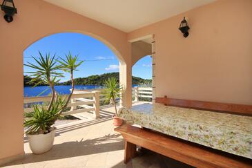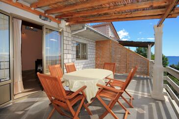 Appartamento può accogliere 4 ospiti. I letti sono disposti nelle camere da letto che sono 2, su 50m2. Gli ospiti hanno a disposizione il proprio terrazzo per godere nelle calde serate estive. Dall'appartamento si gode di una vista sul mare. Si può preparare il cibo utilizzando il barbecue comune.
