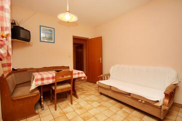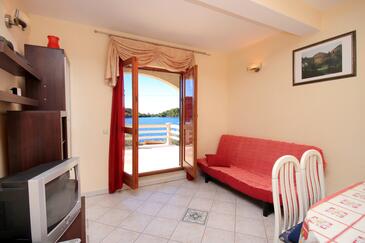 Appartamento può accogliere 4 ospiti. I letti sono disposti nelle camere da letto che sono 2, su 50m2. Gli ospiti hanno a disposizione il proprio terrazzo per godere nelle calde serate estive. Dall'appartamento si gode di una vista sul mare. Si può preparare il cibo utilizzando il barbecue comune.