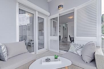 Appartamento può accogliere 3 ospiti. I letti sono disposti nelle camere da letto che sono 1, e nella camera di soggiorno, su 43m2. Gli ospiti hanno a disposizione il proprio terrazzo per godere nelle calde serate estive. Dall'appartamento si gode di una vista sul mare. Si può preparare il cibo utilizzando il barbecue comune.