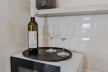 Appartamento può accogliere 3 ospiti. I letti sono disposti nelle camere da letto che sono 1, e nella camera di soggiorno, su 43m2. Gli ospiti hanno a disposizione il proprio terrazzo per godere nelle calde serate estive. Dall'appartamento si gode di una vista sul mare. Si può preparare il cibo utilizzando il barbecue comune.