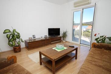 Appartamento può accogliere 6 ospiti. I letti sono disposti nelle camere da letto che sono 3, su 80m2. Gli ospiti hanno a disposizione il proprio terrazzo per godere nelle calde serate estive. Dall'appartamento si gode di una vista sul mare. Per il piacere totale e il relax c'è il barbecue privato solo per gli ospiti di quest'alloggio.