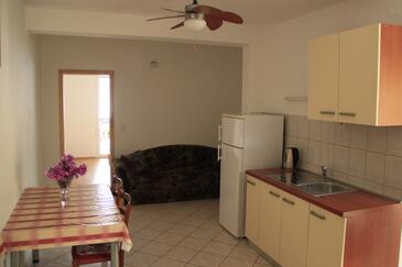 Appartamento può accogliere 4 ospiti. I letti sono disposti nelle camere da letto che sono 2, su 51m2. Gli ospiti hanno a disposizione il proprio terrazzo per godere nelle calde serate estive. Dall'appartamento si gode di una vista sul mare. Si può preparare il cibo utilizzando il barbecue comune.