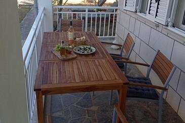 Casa può accogliere 4 ospiti. I letti sono disposti nelle camere da letto che sono 2, su 74m2. Gli ospiti hanno a disposizione il proprio terrazzo per godere nelle calde serate estive. Dalla casa si gode di una vista sul mare. Si può preparare il cibo utilizzando il barbecue comune.