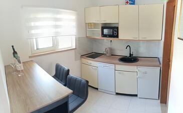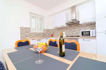 Appartamento può accogliere 4 ospiti. I letti sono disposti nelle camere da letto che sono 2, su 70m2. Gli ospiti hanno a disposizione il proprio terrazzo per godere nelle calde serate estive. Dall'appartamento si gode di una vista sul mare. Si può preparare il cibo utilizzando il barbecue comune.