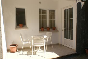 Appartamento può accogliere 4 ospiti. I letti sono disposti nelle camere da letto che sono 2, su 65m2. Gli ospiti hanno a disposizione il proprio terrazzo per godere nelle calde serate estive. Dall'appartamento si gode di una vista sul mare. Si può preparare il cibo utilizzando il barbecue comune.