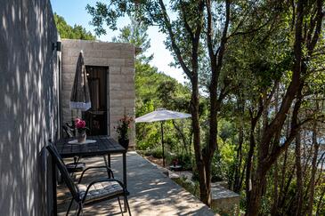 Casa può accogliere 2 ospiti. I letti sono disposti nelle camere da letto che sono 1, su 21m2. Gli ospiti hanno a disposizione il proprio terrazzo per godere nelle calde serate estive. Dalla casa si gode di una vista sul mare. Si può preparare il cibo utilizzando il barbecue comune.