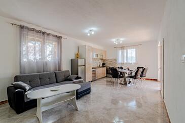 Appartamento può accogliere 6 ospiti. I letti sono disposti nelle camere da letto che sono 3, su 60m2. Gli ospiti hanno a disposizione il proprio balcone per godere delle calde serate estive. Dall'appartamento si gode di una vista sul mare. Si può preparare il cibo utilizzando il barbecue comune. Nell'unità di alloggio si possono portare gli animali domestici con un pagamento supplementare.