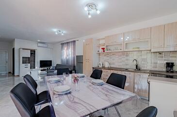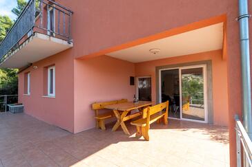 Appartamento può accogliere 6 ospiti. I letti sono disposti nelle camere da letto che sono 3, su 60m2. Gli ospiti hanno a disposizione il proprio balcone per godere delle calde serate estive. Dall'appartamento si gode di una vista sul mare. Si può preparare il cibo utilizzando il barbecue comune. Nell'unità di alloggio si possono portare gli animali domestici con un pagamento supplementare.