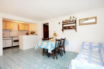 Appartamento può accogliere 7 ospiti. I letti sono disposti nelle camere da letto che sono 2, e nella sala da pranzo, su 71m2. Gli ospiti hanno a disposizione il proprio terrazzo per godere nelle calde serate estive. Dall'appartamento si gode di una vista sul mare. Si può preparare il cibo utilizzando il barbecue comune. Nell'unità di alloggio si possono portare gli animali domestici con un pagamento supplementare.