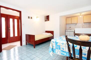 Appartamento può accogliere 7 ospiti. I letti sono disposti nelle camere da letto che sono 2, e nella sala da pranzo, su 71m2. Gli ospiti hanno a disposizione il proprio terrazzo per godere nelle calde serate estive. Dall'appartamento si gode di una vista sul mare. Si può preparare il cibo utilizzando il barbecue comune. Nell'unità di alloggio si possono portare gli animali domestici con un pagamento supplementare.