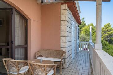 Casa può accogliere 8 ospiti. I letti sono disposti nelle camere da letto che sono 4, su 110m2. Gli ospiti hanno a disposizione il proprio terrazzo per godere nelle calde serate estive. Dalla casa si gode di una vista sul mare. Durante il soggiorno gli ospiti si possono rilassare nella piscina privata. Le stanze dell'unità d'alloggio non sono connesse in un insieme.