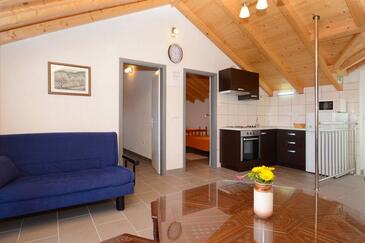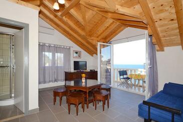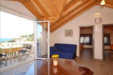 Casa può accogliere 8 ospiti. I letti sono disposti nelle camere da letto che sono 4, su 110m2. Gli ospiti hanno a disposizione il proprio terrazzo per godere nelle calde serate estive. Dalla casa si gode di una vista sul mare. Durante il soggiorno gli ospiti si possono rilassare nella piscina privata. Le stanze dell'unità d'alloggio non sono connesse in un insieme.