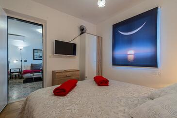 Appartamento può accogliere 5 ospiti. I letti sono disposti nelle camere da letto che sono 2, e nella camera di soggiorno, su 44m2. Gli ospiti hanno a disposizione il proprio terrazzo per godere nelle calde serate estive. Dall'appartamento si gode di una vista sul mare. Si può preparare il cibo utilizzando il barbecue comune.