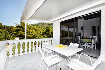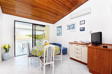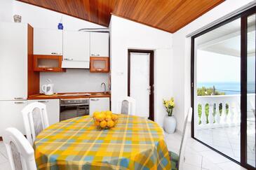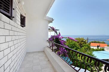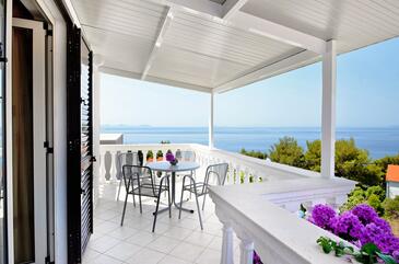 Appartamento può accogliere 5 ospiti. I letti sono disposti nelle camere da letto che sono 2, su 51m2. Gli ospiti hanno a disposizione il proprio terrazzo per godere nelle calde serate estive. Dall'appartamento si gode di una vista sul mare. Si può preparare il cibo utilizzando il barbecue comune.
