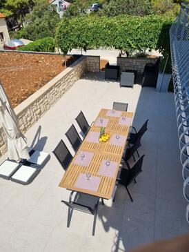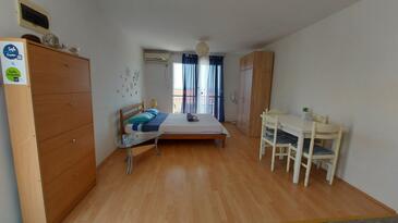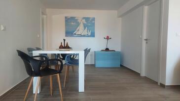 Casa può accogliere 8 ospiti. I letti sono disposti nelle camere da letto che sono 3, e nella camera di soggiorno, su 100m2. Gli ospiti hanno a disposizione il proprio balcone per godere delle calde serate estive. Dalla casa si gode di una vista sul mare. Si può preparare il cibo utilizzando il barbecue comune.