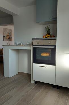 Casa può accogliere 8 ospiti. I letti sono disposti nelle camere da letto che sono 3, e nella camera di soggiorno, su 100m2. Gli ospiti hanno a disposizione il proprio balcone per godere delle calde serate estive. Dalla casa si gode di una vista sul mare. Si può preparare il cibo utilizzando il barbecue comune.