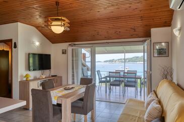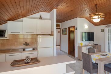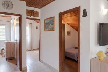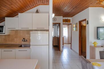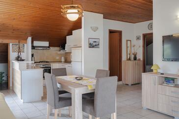 Appartamento può accogliere 6 ospiti. I letti sono disposti nelle camere da letto che sono 3, su 80m2. Gli ospiti hanno a disposizione il proprio terrazzo per godere nelle calde serate estive. Dall'appartamento si gode di una vista sul mare. Si può preparare il cibo utilizzando il barbecue comune.