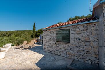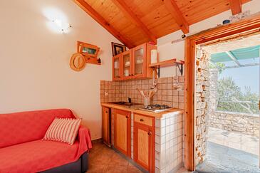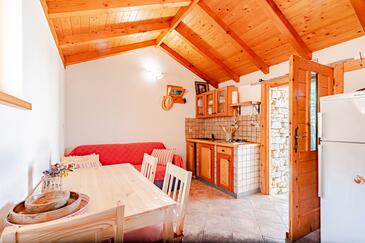 Casa può accogliere 4 ospiti. I letti sono disposti nelle camere da letto che sono 1, e nella sala da pranzo, su 25m2. Gli ospiti hanno a disposizione il proprio terrazzo per godere nelle calde serate estive. Dalla casa si gode di una vista sul mare. Per il piacere totale e il relax c'è il barbecue privato solo per gli ospiti di quest'alloggio. Nell'unità di alloggio si possono portare gli animali domestici con un pagamento supplementare. Arrivati nell'unità d'alloggio i clienti devono pagare un deposito (il prezzo è indicato sul sito).