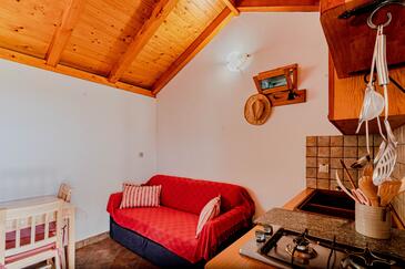 Casa può accogliere 4 ospiti. I letti sono disposti nelle camere da letto che sono 1, e nella sala da pranzo, su 25m2. Gli ospiti hanno a disposizione il proprio terrazzo per godere nelle calde serate estive. Dalla casa si gode di una vista sul mare. Per il piacere totale e il relax c'è il barbecue privato solo per gli ospiti di quest'alloggio. Nell'unità di alloggio si possono portare gli animali domestici con un pagamento supplementare. Arrivati nell'unità d'alloggio i clienti devono pagare un deposito (il prezzo è indicato sul sito).
