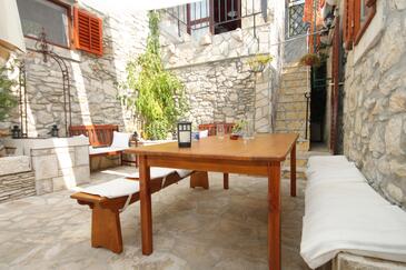 Casa può accogliere 6 ospiti. I letti sono disposti nelle camere da letto che sono 3, su 95m2. Gli ospiti hanno a disposizione il proprio terrazzo per godere nelle calde serate estive. Dalla casa si gode di una vista sul mare. Per il piacere totale e il relax c'è il barbecue privato solo per gli ospiti di quest'alloggio. Durante il soggiorno gli ospiti si possono rilassare nella piscina privata. Nell'unità di alloggio si possono portare gli animali domestici con un pagamento supplementare. Arrivati nell'unità d'alloggio i clienti devono pagare un deposito (il prezzo è indicato sul sito).