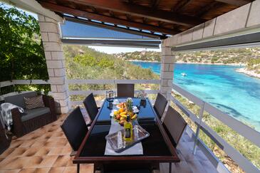 Casa può accogliere 10 ospiti. I letti sono disposti nelle camere da letto che sono 5, su 102m2. Gli ospiti hanno a disposizione il proprio terrazzo per godere nelle calde serate estive. Dalla casa si gode di una vista sul mare. Per il piacere totale e il relax c'è il barbecue privato solo per gli ospiti di quest'alloggio.