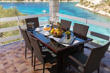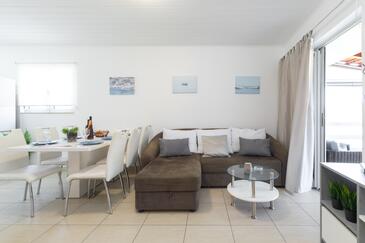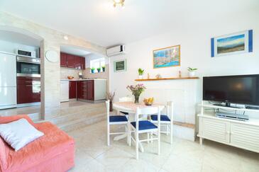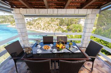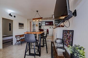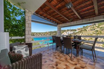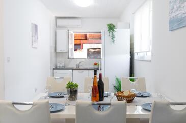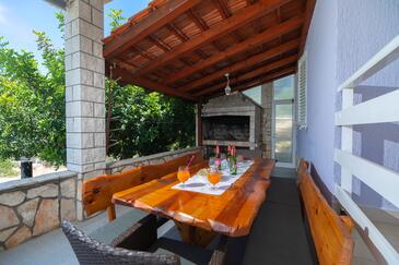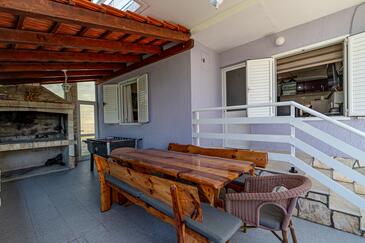 Casa può accogliere 10 ospiti. I letti sono disposti nelle camere da letto che sono 5, su 102m2. Gli ospiti hanno a disposizione il proprio terrazzo per godere nelle calde serate estive. Dalla casa si gode di una vista sul mare. Per il piacere totale e il relax c'è il barbecue privato solo per gli ospiti di quest'alloggio.