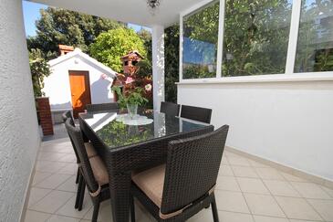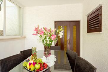 Appartamento può accogliere 6 ospiti. I letti sono disposti nelle camere da letto che sono 3, su 80m2. Gli ospiti hanno a disposizione il proprio terrazzo per godere nelle calde serate estive. Dall'appartamento si gode di una vista sul mare. Per il piacere totale e il relax c'è il barbecue privato solo per gli ospiti di quest'alloggio.