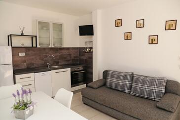 Appartamento può accogliere 6 ospiti. I letti sono disposti nelle camere da letto che sono 3, su 66m2. Gli ospiti hanno a disposizione il proprio terrazzo per godere nelle calde serate estive. Dall'appartamento si gode di una vista sul mare. Si può preparare il cibo utilizzando il barbecue comune. Durante il soggiorno gli ospiti si possono rilassare nella piscina privata. Le stanze dell'unità d'alloggio non sono connesse in un insieme.