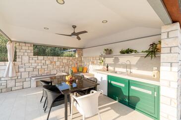 Casa può accogliere 6 ospiti. I letti sono disposti nelle camere da letto che sono 2, e nella camera di soggiorno, su 87m2. Gli ospiti hanno a disposizione il proprio terrazzo per godere nelle calde serate estive. Per il piacere totale e il relax c'è il barbecue privato solo per gli ospiti di quest'alloggio. Durante il soggiorno gli ospiti si possono rilassare nella piscina privata.