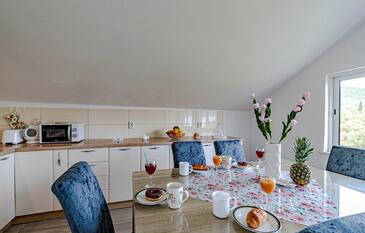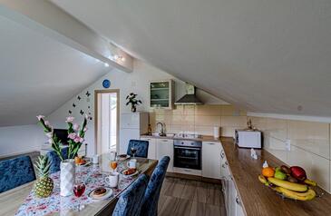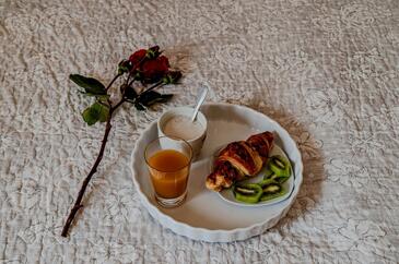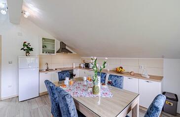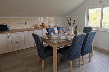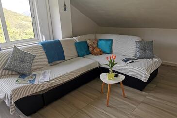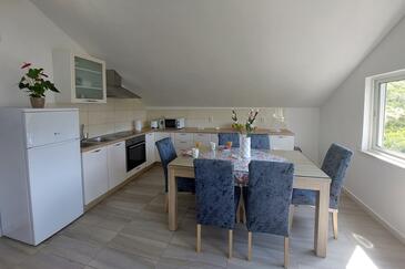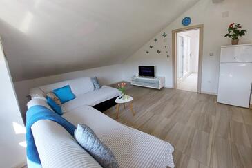 Appartamento può accogliere 6 ospiti. I letti sono disposti nelle camere da letto che sono 2, e nella camera di soggiorno, su 74m2. Gli ospiti hanno a disposizione il proprio terrazzo per godere nelle calde serate estive. Dall'appartamento si gode di una vista sul mare. Per il piacere totale e il relax c'è il barbecue privato solo per gli ospiti di quest'alloggio.