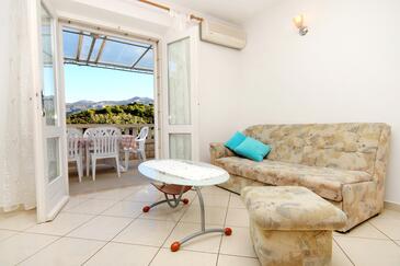 Appartamento può accogliere 5 ospiti. I letti sono disposti nelle camere da letto che sono 3, su 59m2. Gli ospiti hanno a disposizione il proprio terrazzo per godere nelle calde serate estive. Dall'appartamento si gode di una vista sul mare. Si può preparare il cibo utilizzando il barbecue comune. Nell'unità di alloggio si possono portare gli animali domestici con un pagamento supplementare.