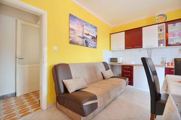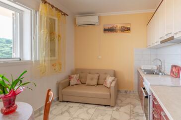 Appartamento può accogliere 5 ospiti. I letti sono disposti nelle camere da letto che sono 2, e nella sala da pranzo, su 66m2. Gli ospiti hanno a disposizione il proprio terrazzo per godere nelle calde serate estive. Dall'appartamento si gode di una vista sul mare. Si può preparare il cibo utilizzando il barbecue comune. Arrivati nell'unità d'alloggio i clienti devono pagare un deposito (il prezzo è indicato sul sito).