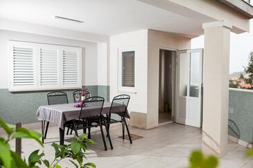 Appartamento può accogliere 4 ospiti. I letti sono disposti nelle camere da letto che sono 2, su 81m2. Gli ospiti hanno a disposizione il proprio terrazzo per godere nelle calde serate estive. Dall'appartamento si gode di una vista sul mare. Si può preparare il cibo utilizzando il barbecue comune.