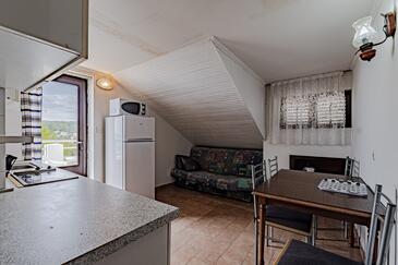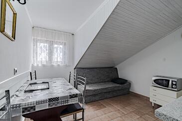 Appartamento può accogliere 5 ospiti. I letti sono disposti nelle camere da letto che sono 2, e nella sala da pranzo, su 44m2. Dall'appartamento si gode di una vista sul mare. Si può preparare il cibo utilizzando il barbecue comune. Durante il soggiorno gli ospiti possono utilizzare la piscina comune. L'unità di alloggio prenotata utilizza il terazzo in comune.