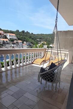 Appartamento può accogliere 4 ospiti. I letti sono disposti nelle camere da letto che sono 2, su 43m2. Gli ospiti hanno a disposizione il proprio terrazzo per godere nelle calde serate estive. Dall'appartamento si gode di una vista sul mare. Si può preparare il cibo utilizzando il barbecue comune. Arrivati nell'unità d'alloggio i clienti devono pagare un deposito (il prezzo è indicato sul sito).