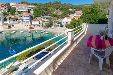 Appartamento può accogliere 6 ospiti. I letti sono disposti nelle camere da letto che sono 3, su 59m2. Gli ospiti hanno a disposizione il proprio terrazzo per godere nelle calde serate estive. Dall'appartamento si gode di una vista sul mare. Si può preparare il cibo utilizzando il barbecue comune. Nell'unità di alloggio si possono portare gli animali domestici con un pagamento supplementare.