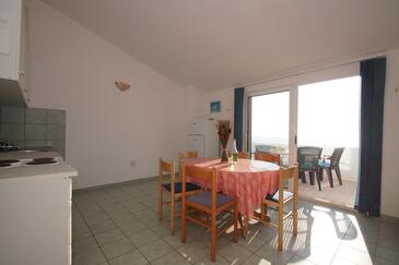 Appartamento può accogliere 6 ospiti. I letti sono disposti nelle camere da letto che sono 2, e nella camera di soggiorno, su 52m2. Gli ospiti hanno a disposizione il proprio terrazzo per godere nelle calde serate estive. Dall'appartamento si gode di una vista sul mare. Si può preparare il cibo utilizzando il barbecue comune. Nell'unità di alloggio si possono portare gli animali domestici con un pagamento supplementare.