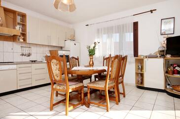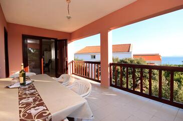 Appartamento può accogliere 6 ospiti. I letti sono disposti nelle camere da letto che sono 3, su 92m2. Gli ospiti hanno a disposizione il proprio terrazzo per godere nelle calde serate estive. Dall'appartamento si gode di una vista sul mare. Si può preparare il cibo utilizzando il barbecue comune.