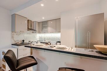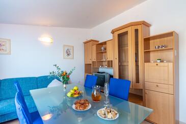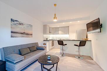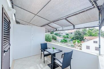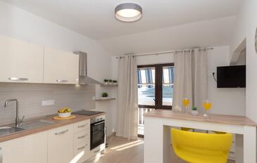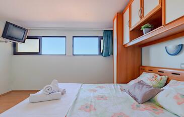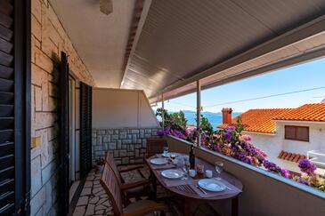 Appartamento può accogliere 4 ospiti. I letti sono disposti nelle camere da letto che sono 2, su 46m2. Gli ospiti hanno a disposizione il proprio terrazzo per godere nelle calde serate estive. Dall'appartamento si gode di una vista sul mare. Si può preparare il cibo utilizzando il barbecue comune.