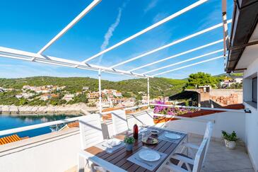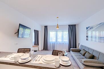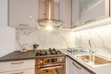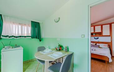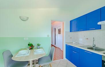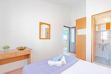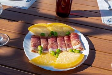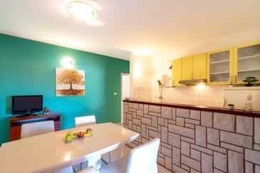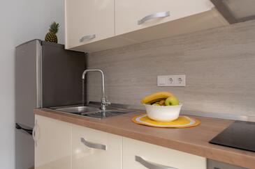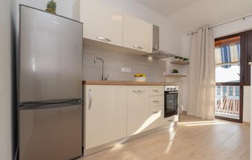 Appartamento può accogliere 4 ospiti. I letti sono disposti nelle camere da letto che sono 2, su 46m2. Gli ospiti hanno a disposizione il proprio terrazzo per godere nelle calde serate estive. Dall'appartamento si gode di una vista sul mare. Si può preparare il cibo utilizzando il barbecue comune.