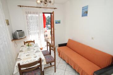Appartamento può accogliere 5 ospiti. I letti sono disposti nelle camere da letto che sono 2, e nella sala da pranzo, su 51m2. Gli ospiti hanno a disposizione il proprio terrazzo per godere nelle calde serate estive. Dall'appartamento si gode di una vista sul mare. Si può preparare il cibo utilizzando il barbecue comune. Nell'unità di alloggio si possono portare gli animali domestici con un pagamento supplementare.