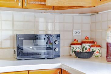 Appartamento può accogliere 4 ospiti. I letti sono disposti nelle camere da letto che sono 2, su 100m2. Gli ospiti hanno a disposizione il proprio terrazzo per godere nelle calde serate estive. Dall'appartamento si gode di una vista sul mare. Si può preparare il cibo utilizzando il barbecue comune.