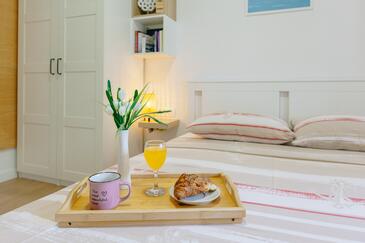 Casa può accogliere 4 ospiti. I letti sono disposti nelle camere da letto che sono 2, su 39m2. Gli ospiti hanno a disposizione il proprio terrazzo per godere nelle calde serate estive. Dalla casa si gode di una vista sul mare. Per il piacere totale e il relax c'è il barbecue privato solo per gli ospiti di quest'alloggio. Nell'unità di alloggio si possono portare gli animali domestici con un pagamento supplementare.