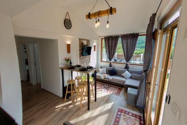 Casa può accogliere 5 ospiti. I letti sono disposti nelle camere da letto che sono 2, e nella camera di soggiorno, su 42m2. Gli ospiti hanno a disposizione il proprio terrazzo per godere nelle calde serate estive. Per il piacere totale e il relax c'è il barbecue privato solo per gli ospiti di quest'alloggio. Durante il soggiorno gli ospiti si possono rilassare nella piscina privata. Nell'unità di alloggio si possono portare gli animali domestici senza alcun pagamento supplementare.