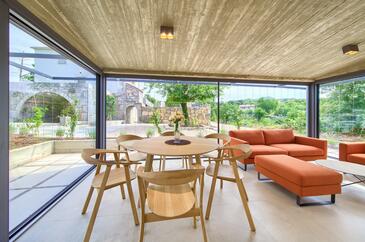 Casa può accogliere 10 ospiti. I letti sono disposti nelle camere da letto che sono 4, su 258m2. Gli ospiti hanno a disposizione il proprio terrazzo per godere nelle calde serate estive. Per il piacere totale e il relax c'è il barbecue privato solo per gli ospiti di quest'alloggio. Durante il soggiorno gli ospiti si possono rilassare nella piscina privata. Le stanze dell'unità d'alloggio non sono connesse in un insieme. Arrivati nell'unità d'alloggio i clienti devono pagare un deposito (il prezzo è indicato sul sito).