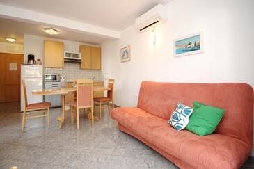 Appartamento può accogliere 4 ospiti. I letti sono disposti nelle camere da letto che sono 2, su 46m2. Gli ospiti hanno a disposizione il proprio balcone per godere delle calde serate estive. Dall'appartamento si gode di una vista sul mare. Nell'unità di alloggio si possono portare gli animali domestici con un pagamento supplementare.